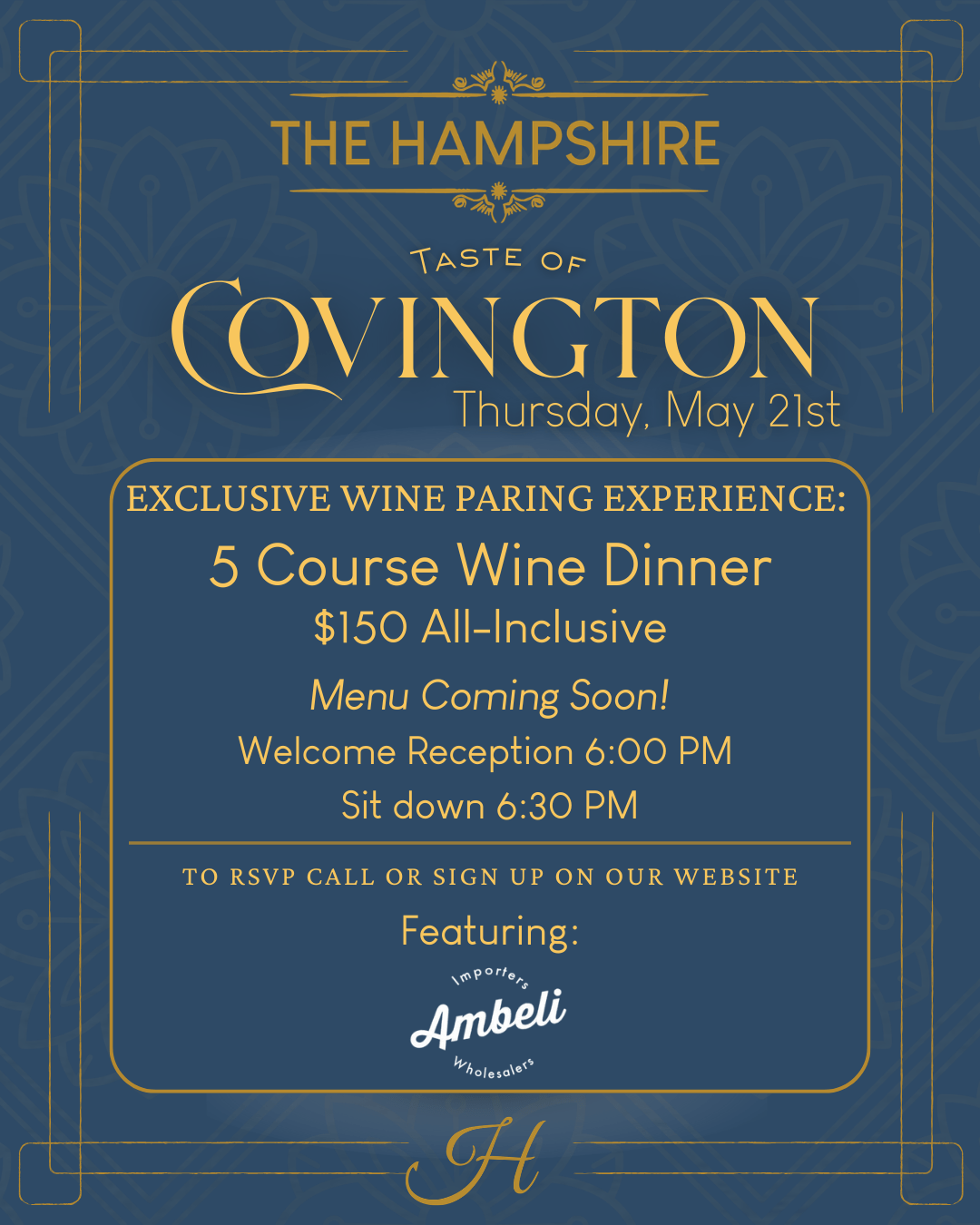 All-inclusive Gourmet Meals With Wine Pairings Throughout May.